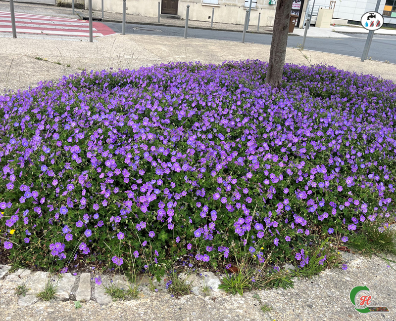 Floraison : bleue soutenue et cœur blanc, hauteur entre 40 et 60 cm, feuillage semi-persistant à caduc.
