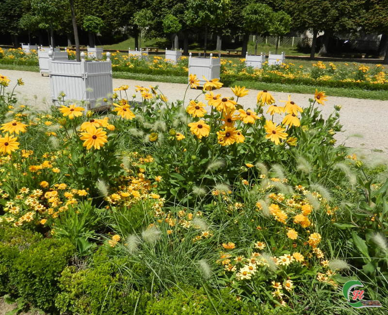 Coréopsis Early Sunrise, Gaillarde Jaune, Œillet d’Inde Jaune, Pennisetum Villosum, Rudbeckia Jaune, Zinnia Profusion Jaune