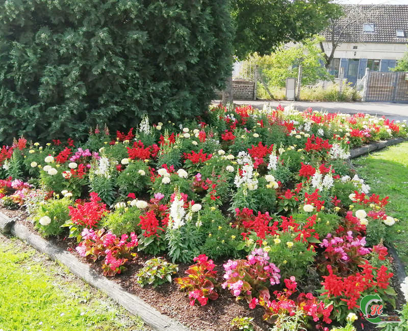 Bégonia Demi-nain Blanc, Bégonia Demi-nain Rouge, Muflier Blanc, Muflier Rouge, Rose d’Inde Vanilla, Sauge Splendens Rouge, Sunpatiens Compact Rouge