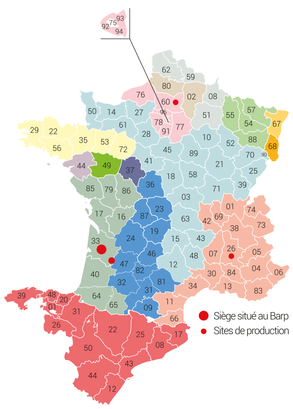 Notre service commercial assure le suivi et l’assistance technique de nos produits Sites de production répartis sur l’héxagone :